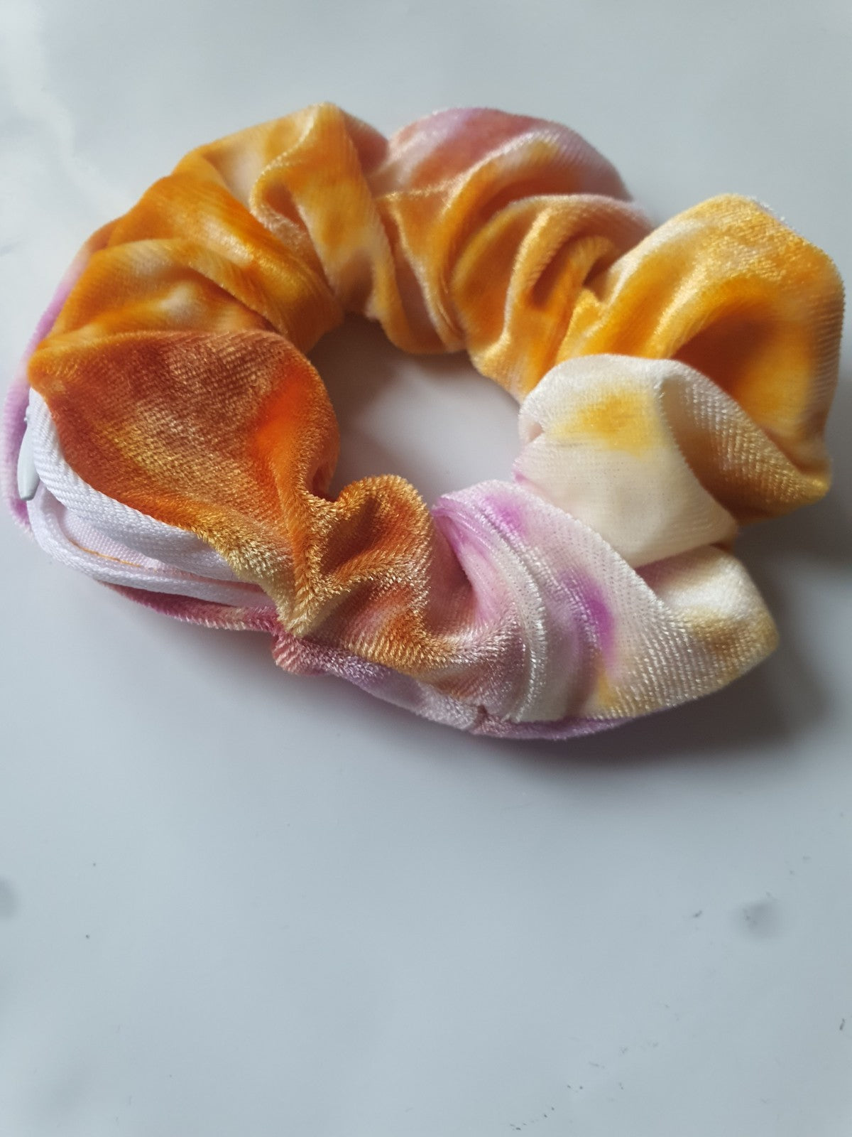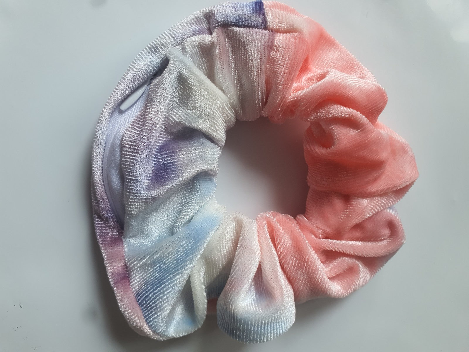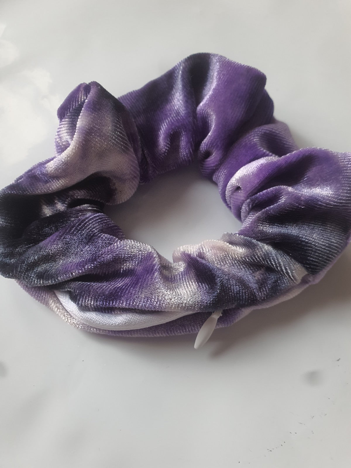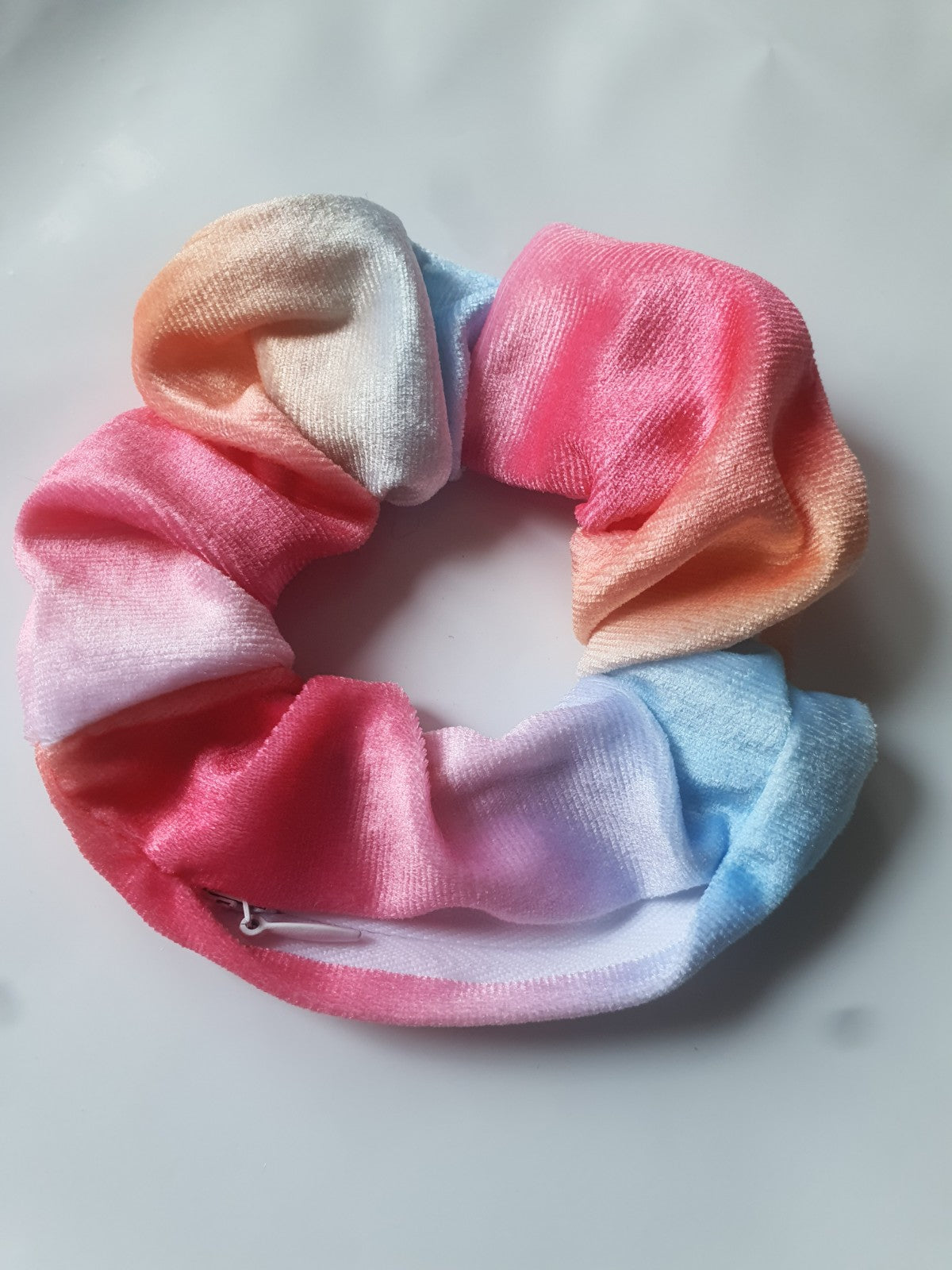 Chouchou de cheveux,en velours ou satin, avec une fermeture Ă©clair,ou on peut mettre un petit objet,disponible en 15 couleurs ,tres jolie,de tye et dyeđđ.