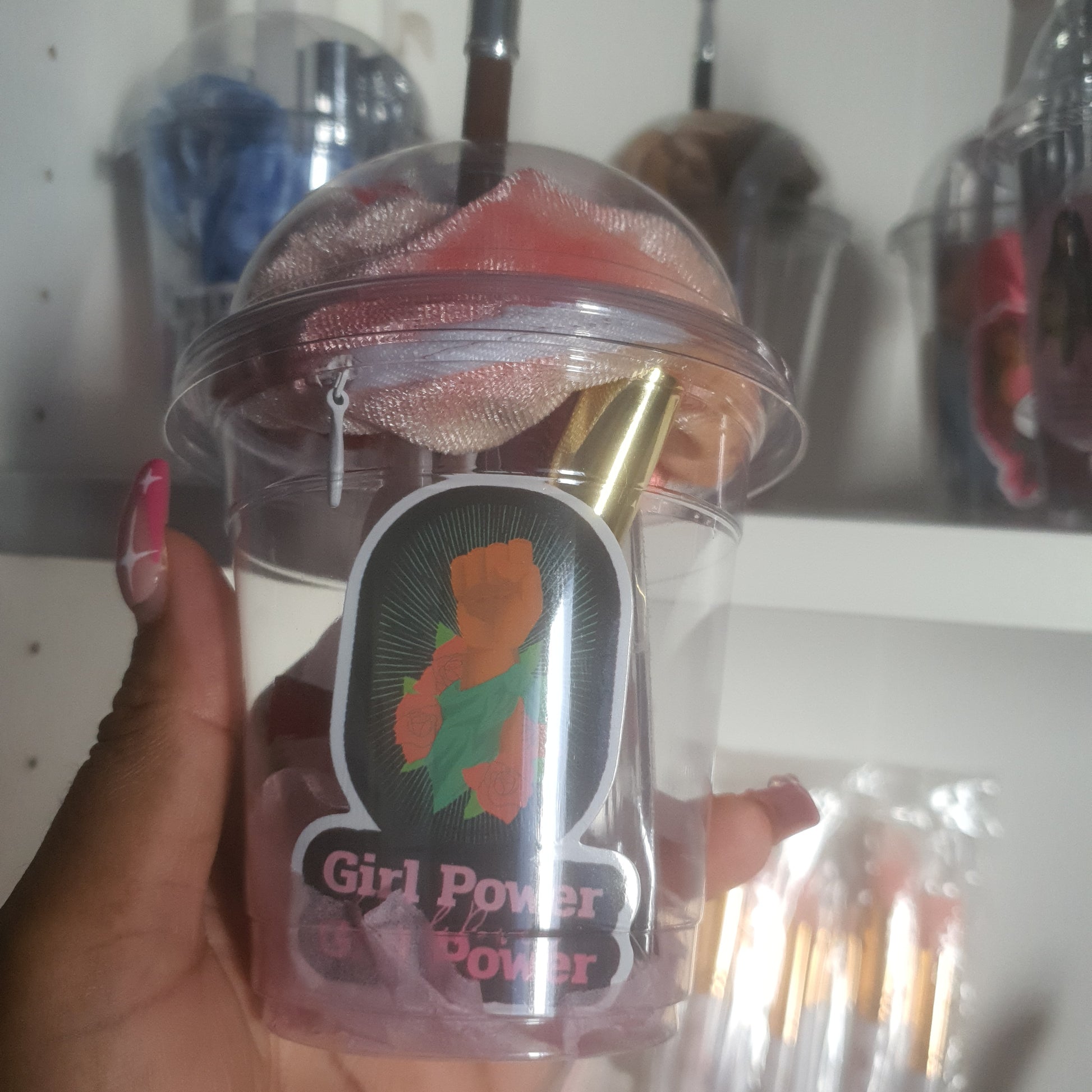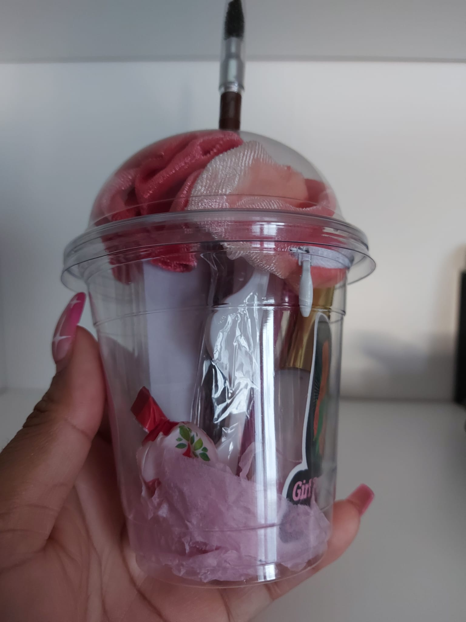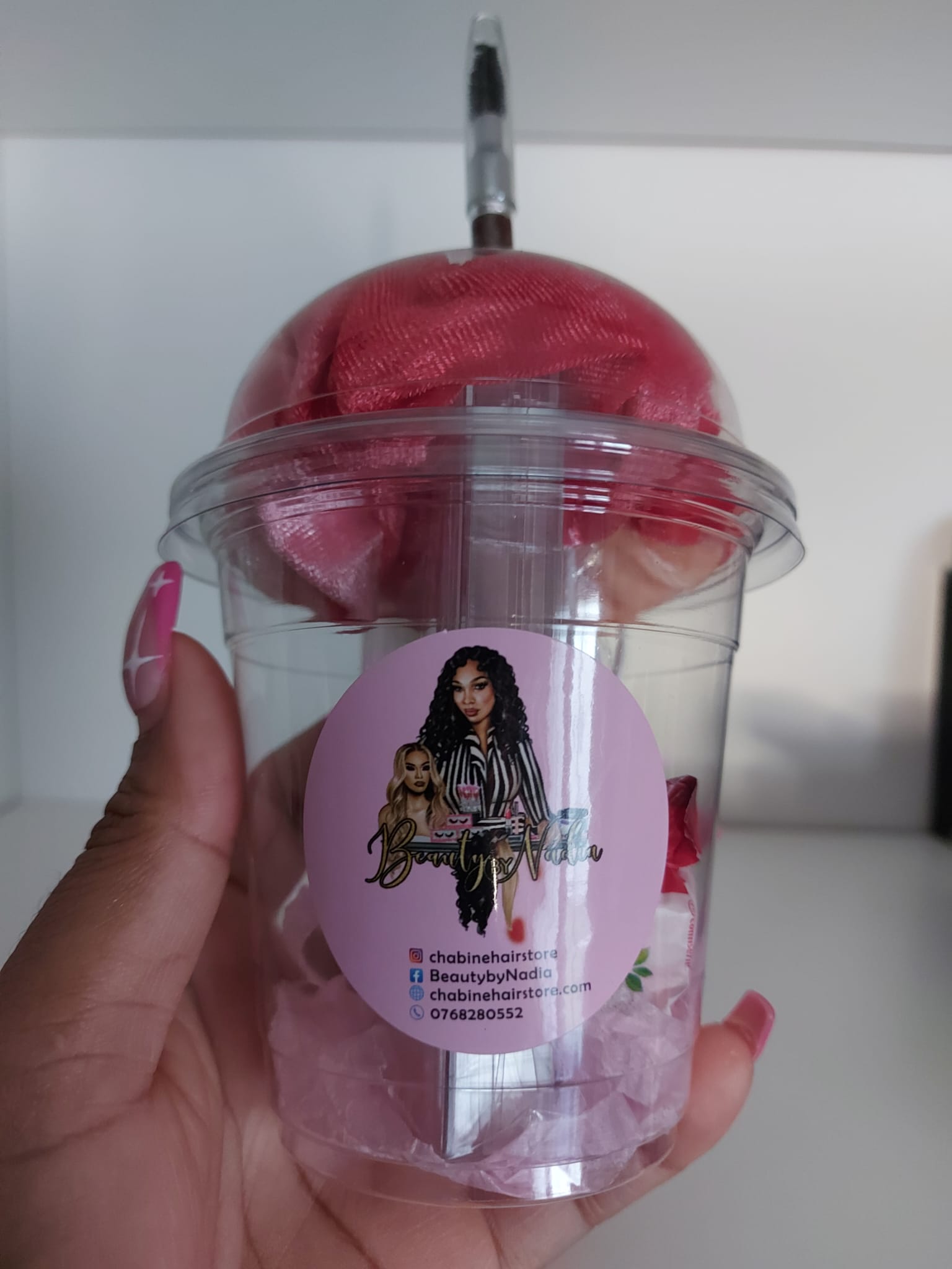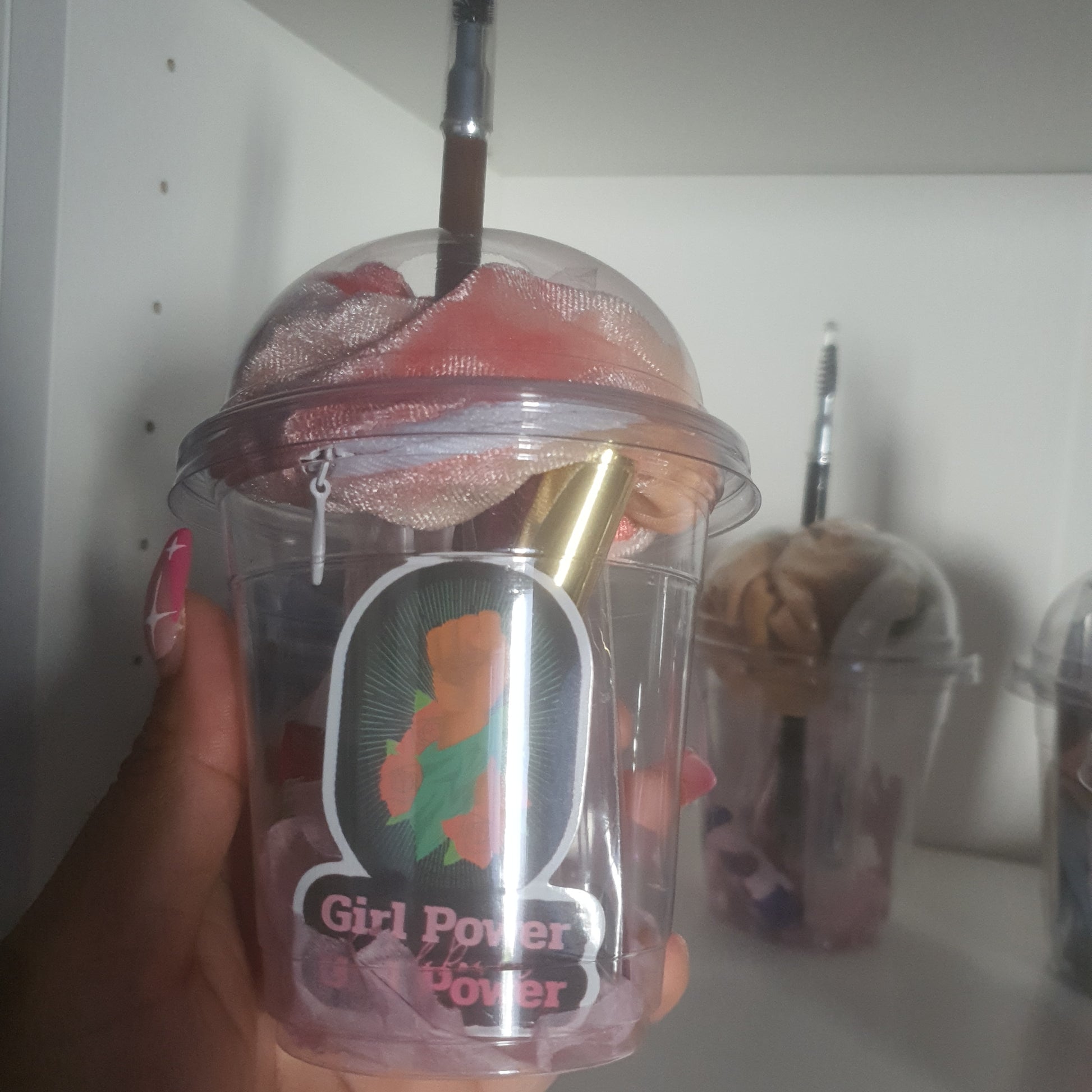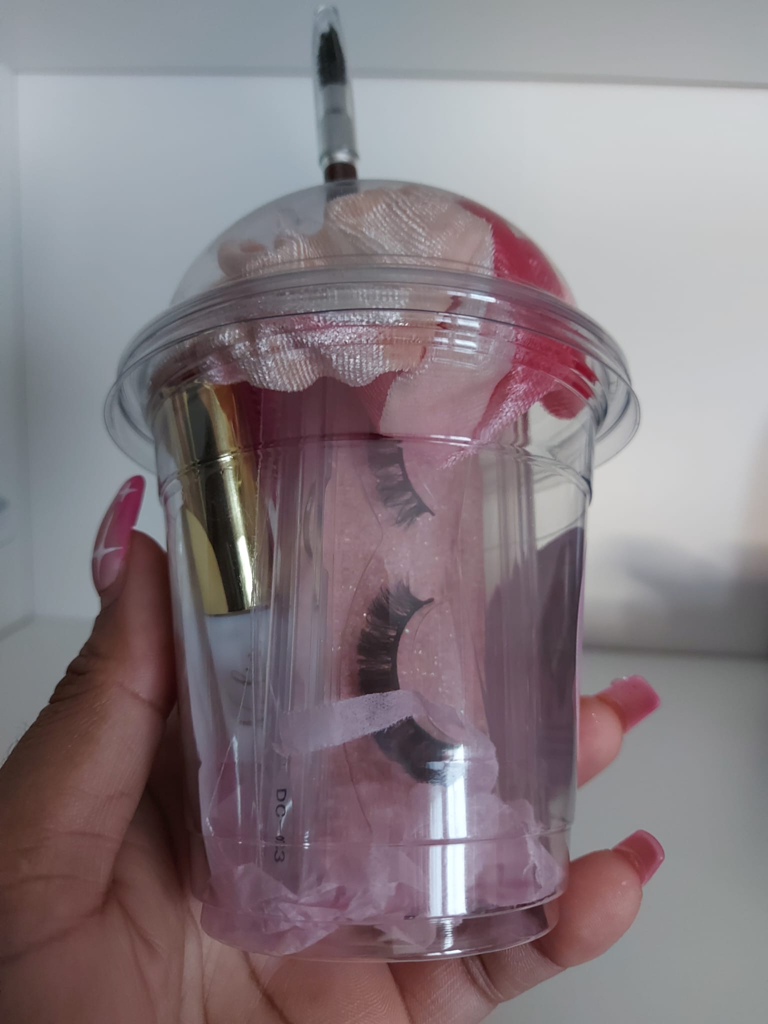 C'est u gobelet bien garnie avec des articles pour les yeux: