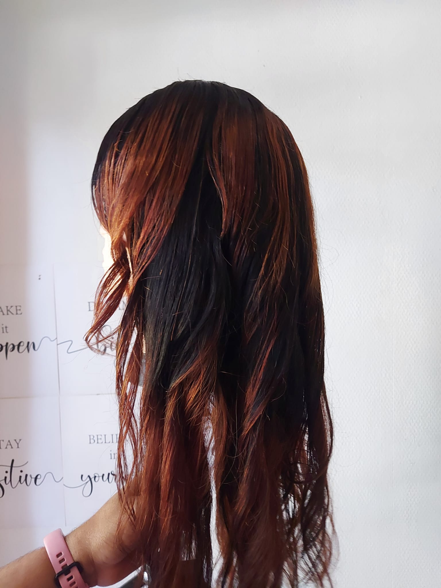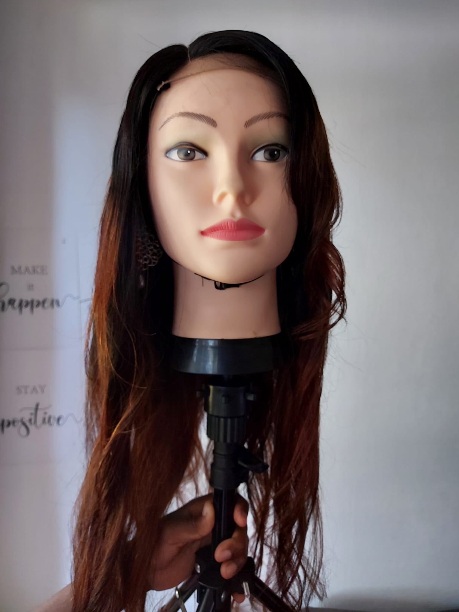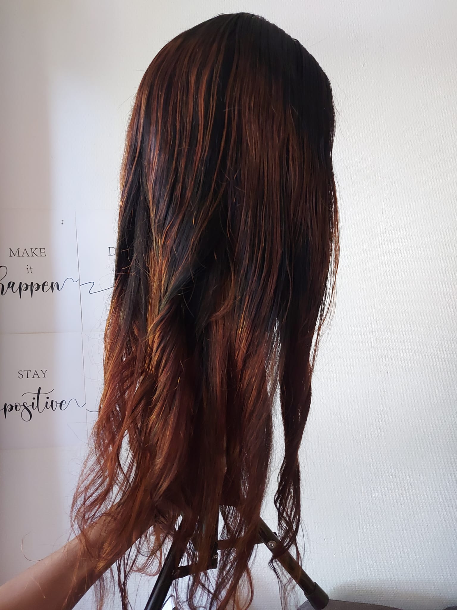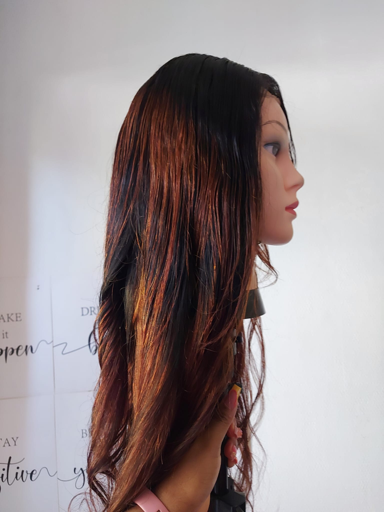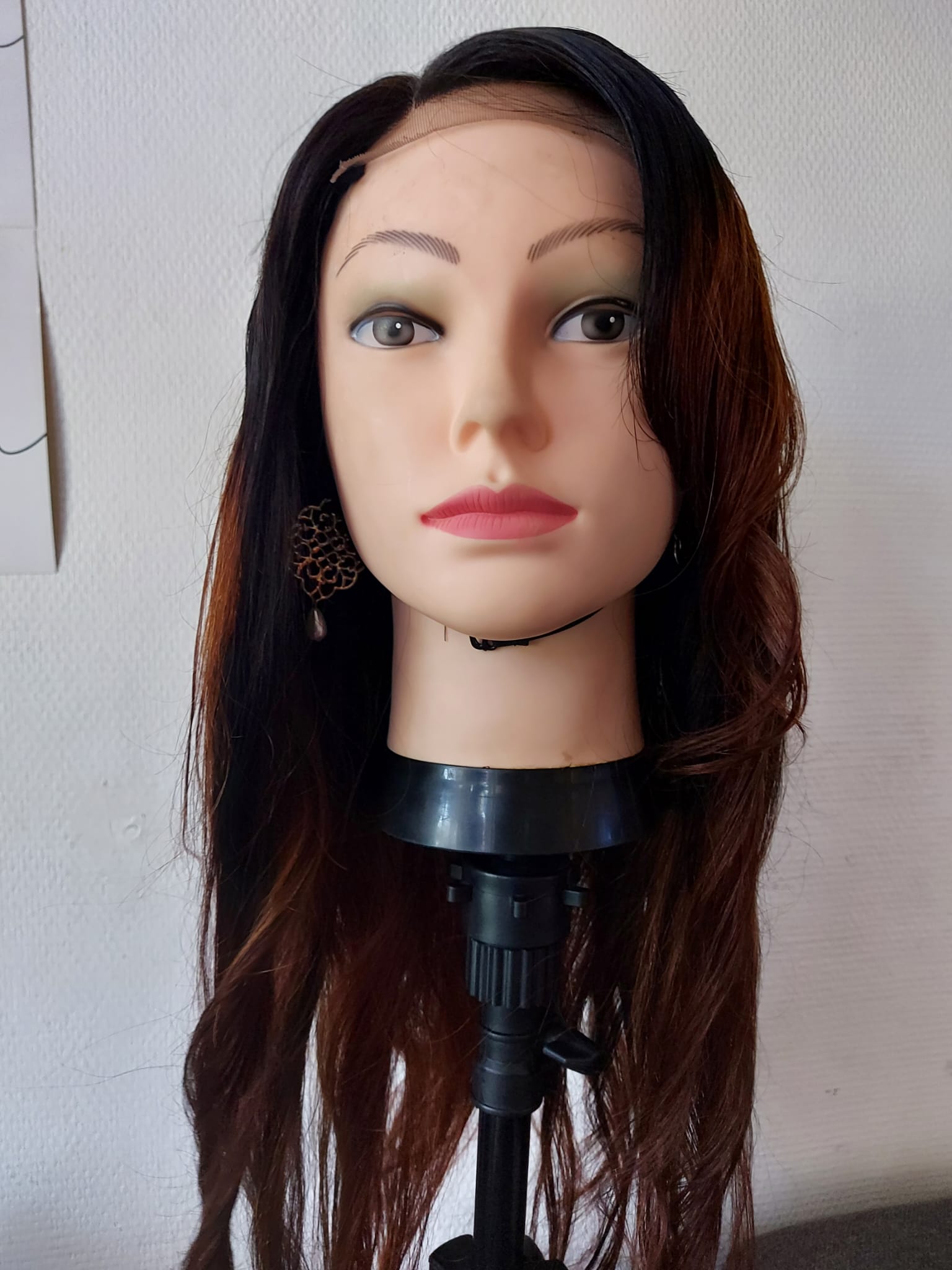 Perruque naturel,couleur noir et chocolat,22pouces,avec closure, raie sur coté,lisse.