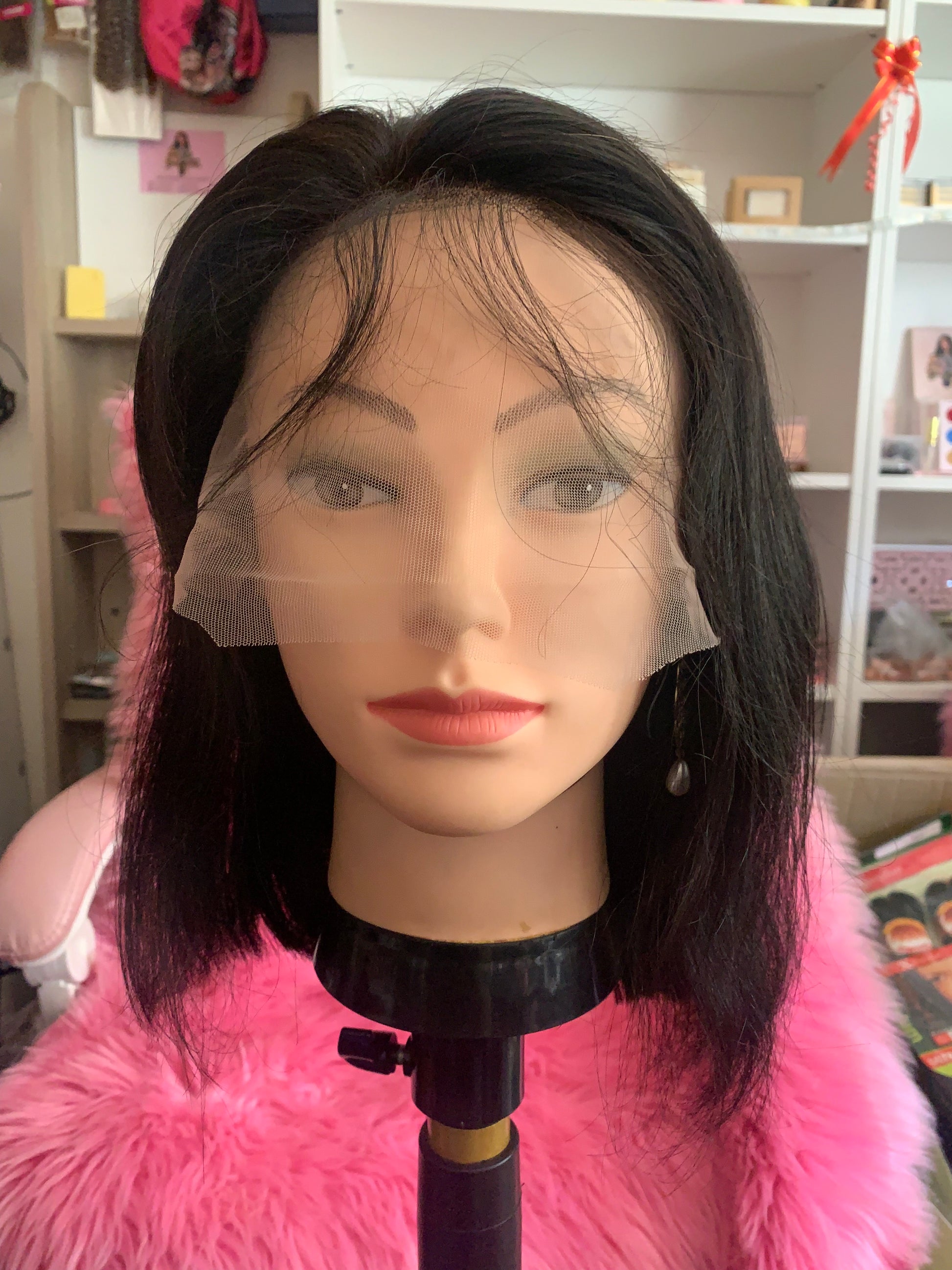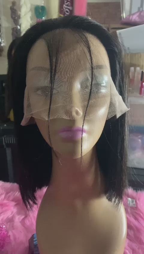 Perruque brésilien lisse, 10pouces, avec lace frontal et bande élastique pour securiser la perruque sur la tête, couleur naturel .