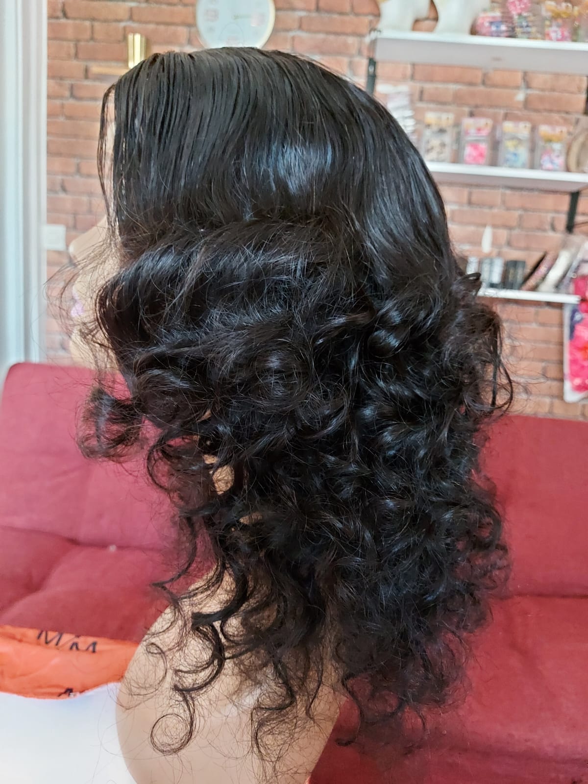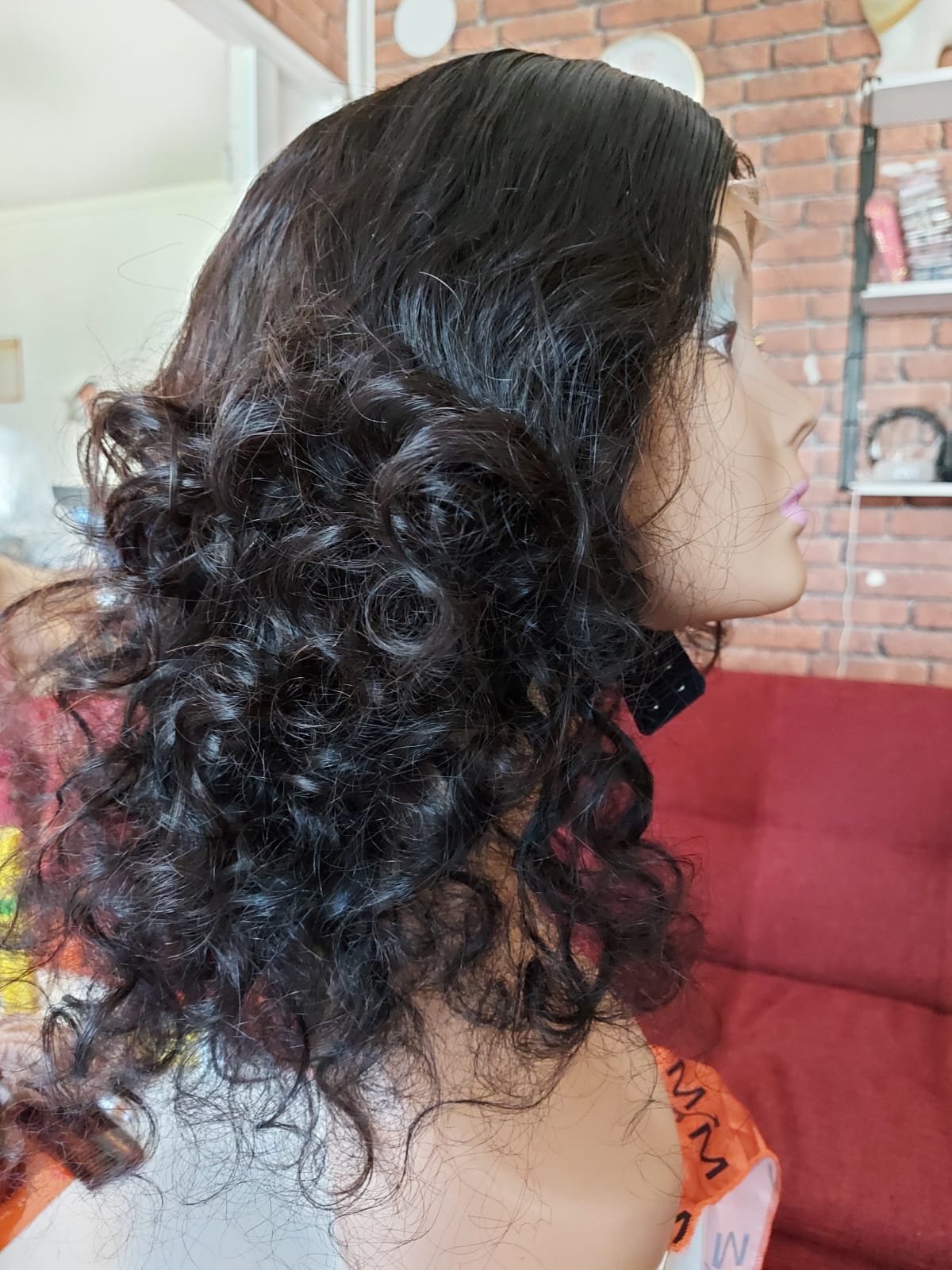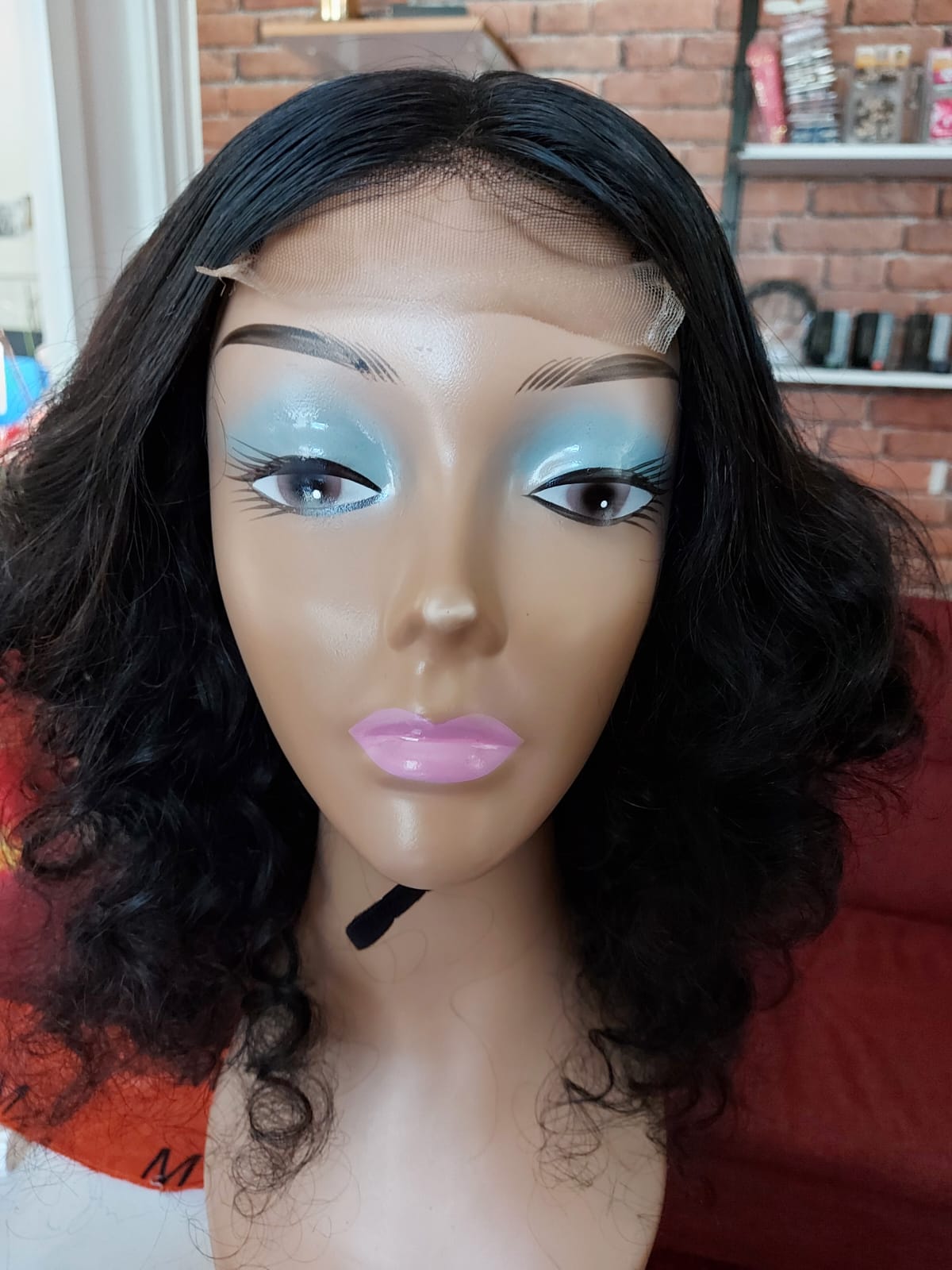 Perruque brésilien, loose wave, 16pouces, avec closure, couleur naturel. La perruque contient 2 pinces à l'intérieur et une bande élastique réglable pour la sécuriser sur la tête!