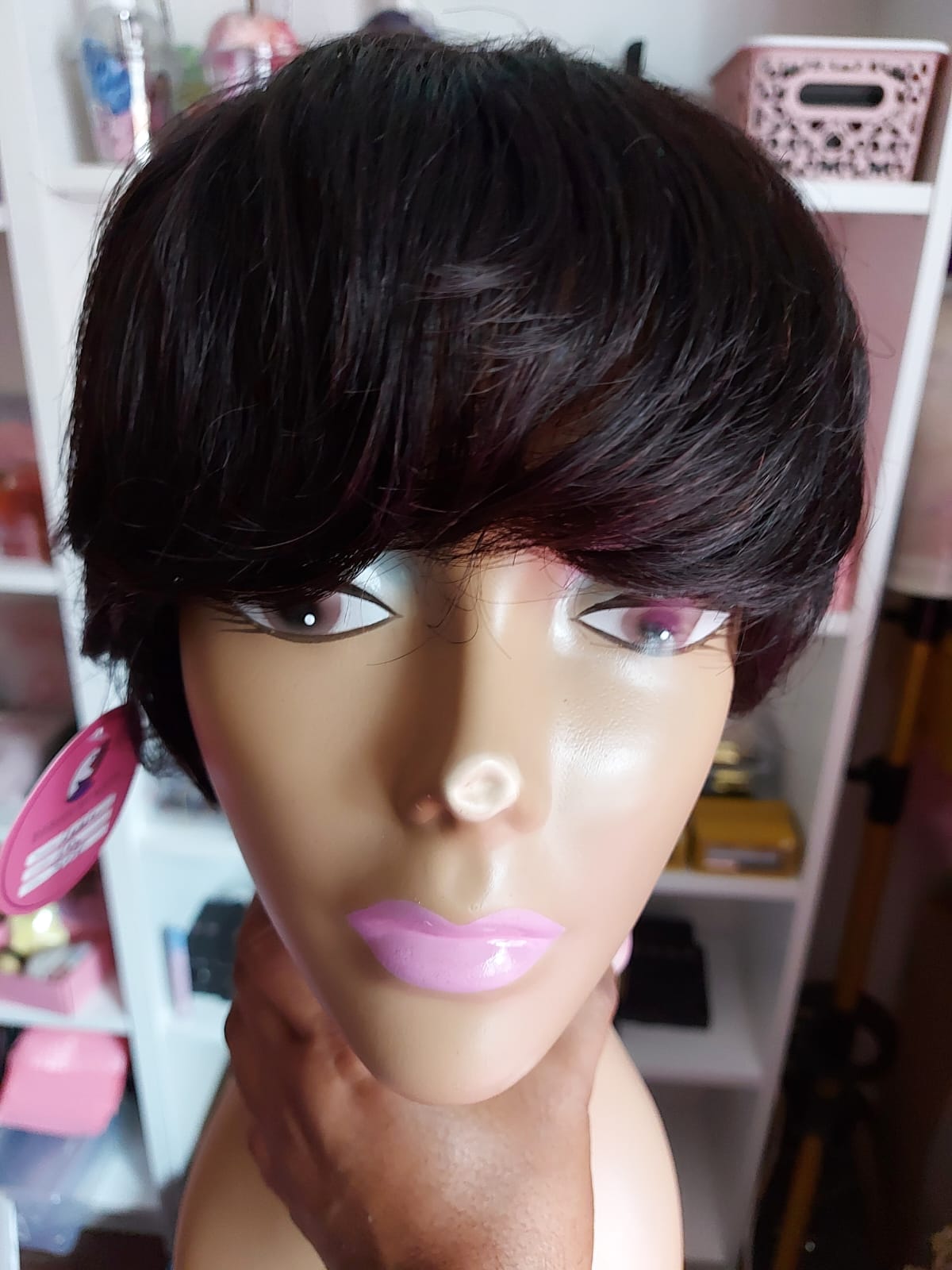 Perruque brésilien, naturel, lisse, à frange, 8pouces, bordeaux et noir.