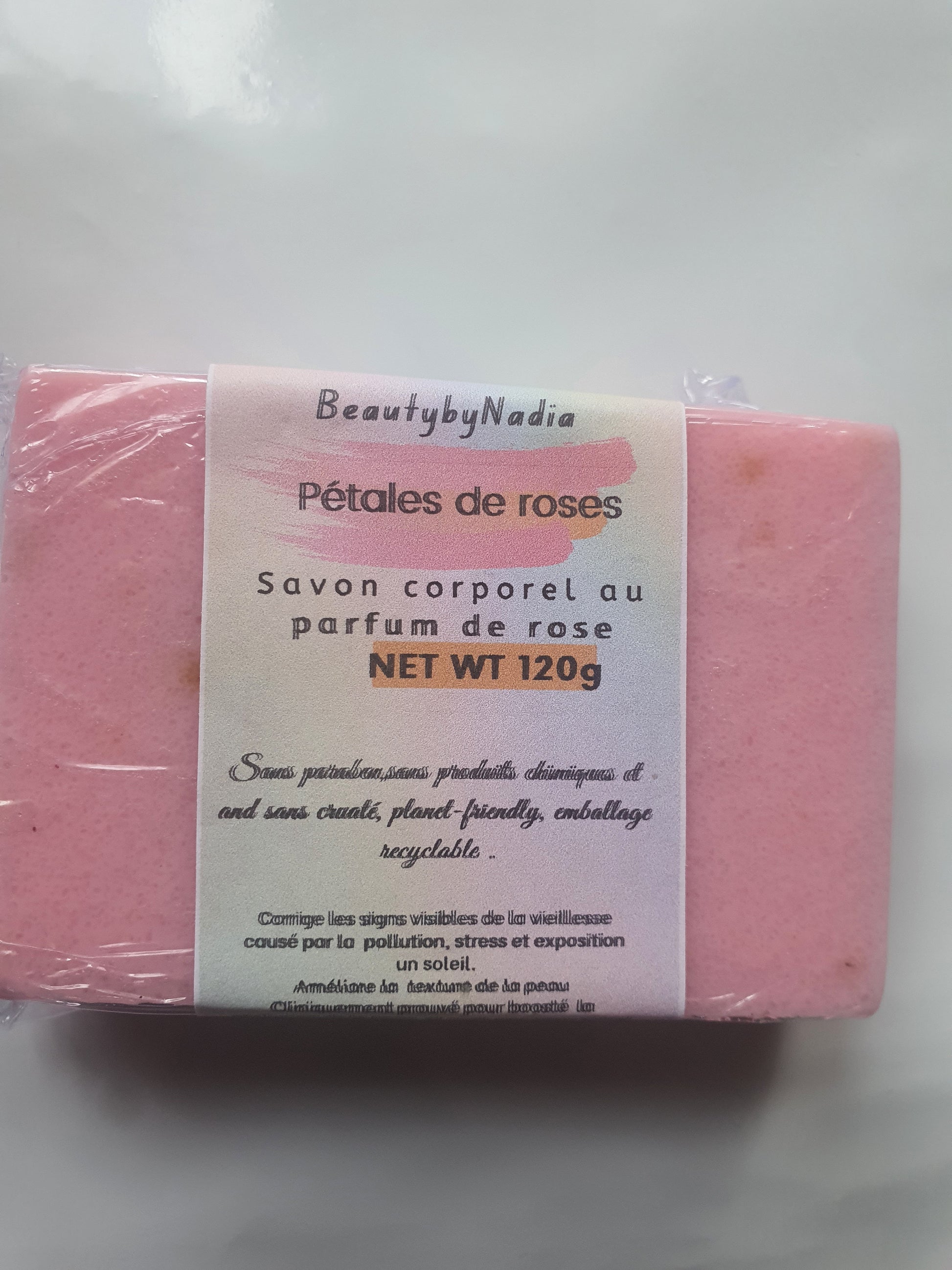 Beautybynadia vous présente son savon naturel aux pétales de rose 🌹, et huile éssentielle naturel de rose, pour améliorer la texture de votre peau en la laissant avec une agréable odeur de rose !