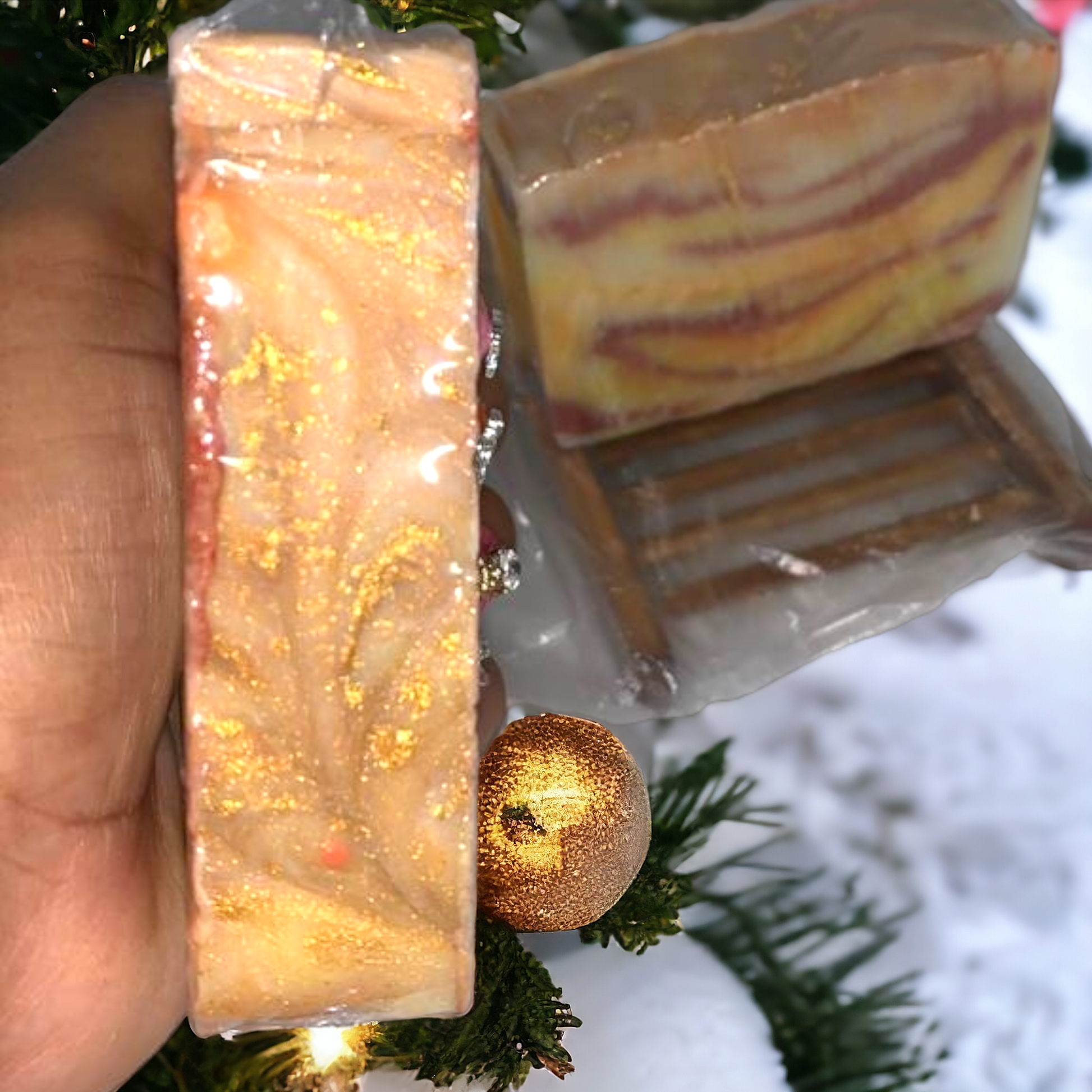 Notre savon 'Fall sunset' àU des couleurs de coucher du soleil comme crème, jaune, orange, and rouge rouillé. Huile éssentielle d'orange, cannelle et gingembre lui donne une agréable odeur d'épices qui se marie bien avec les fêtes 🥳 .