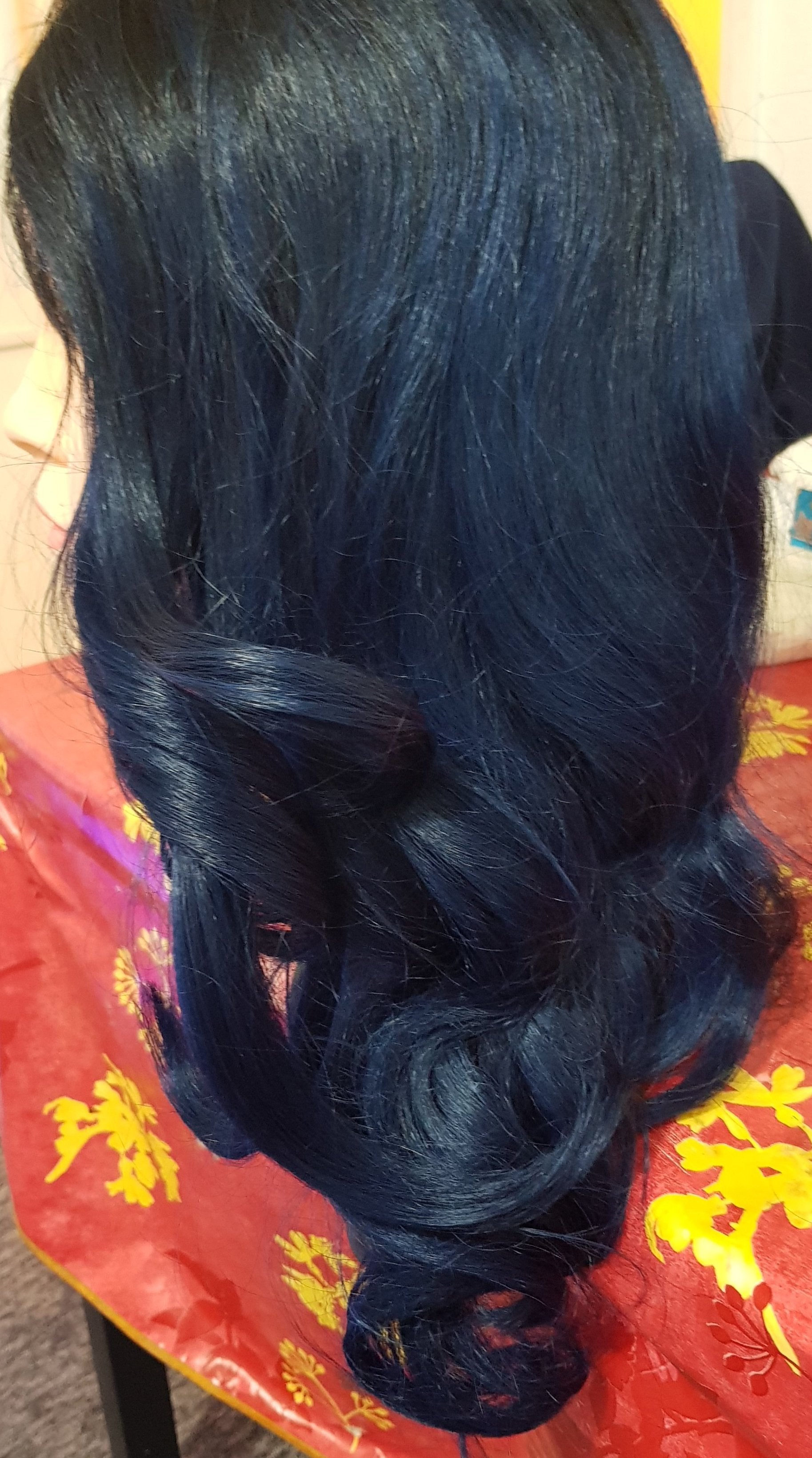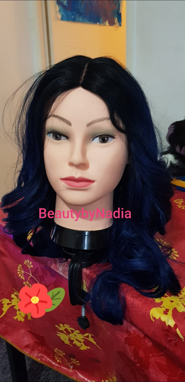 Perruque semi-naturel, excellente qualité, ondulé, noir et bleu, 24 pouces 😍😍